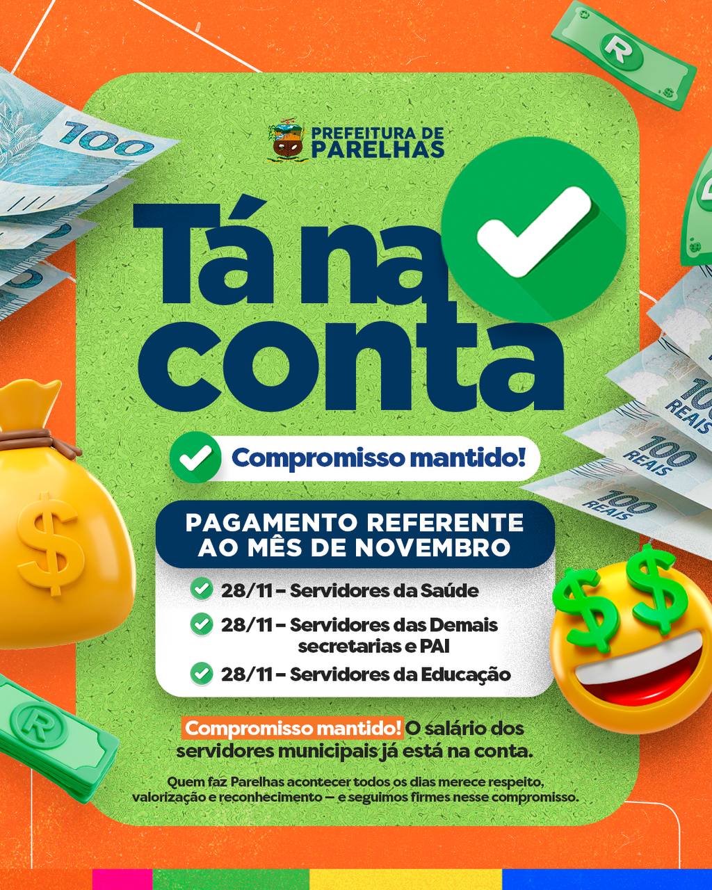 💰 TÁ NA CONTA! Pagamento referente ao mês de novembro já foi realizado para todos os...